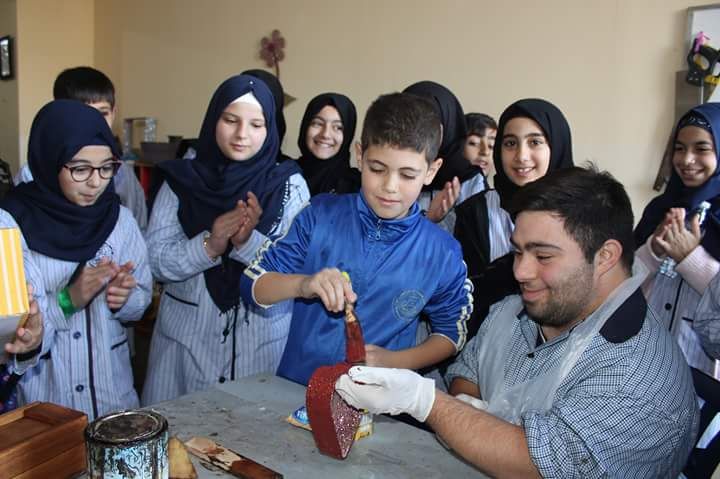 في إطار أنشطة الدمج الإجتماعي، وضمن محور "مختلفون ولكن قادرون" استضاف مركز الإمداد للتربية المختصة - حاروف تلامذة صف السادس أساسي من مدرسة شوكين الرسمية، حيث جالوا على صفوفه، وشاهدوا كيفية تفاعل ذوي الإحتياجات الخاصة وإبداعاتهم في المشاغل المهنية .. عند المغادرة، وخلال توزيع الضيافة من قبل طلاب المركز على تلامذة مدرسة شوكين عبروا عن مفاجئتهم بما شاهدوه من احتراف في نماذج يعجز الأسوياء عن القيام بمثلها..